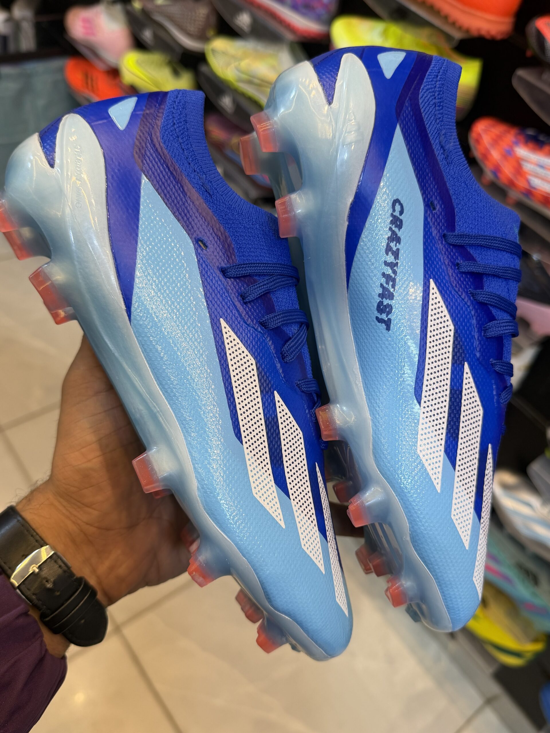 انطلق بأقصى سرعة مع استارز adidas X Crazy المصممة للاعبين الباحثين عن الأداء العالي والخفة داخل الملعب. يتميز الحذاء بتصميم انسيابي يساعد على زيادة السرعة، مع خامات خفيفة توفر راحة وثبات أثناء الجري والمراوغة. النعل مصمم ليمنحك أفضل تماسك على أرضية الملعب، مما يجعله اختيارًا مثاليًا للاعبين الهجوميين وصناع الفارق